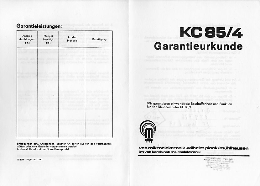 - gekauft wurde 1 KC85/4 und 1 Speichermodul M022 (16 kB RAM) für:
