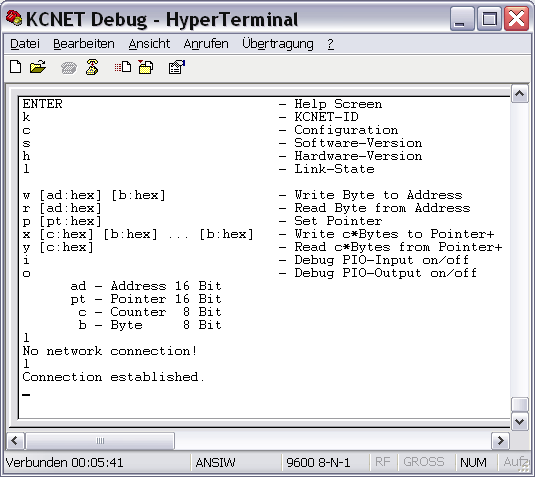 The terminal interface to the debugger has a second important function. The KCNet configuration data for the adaptation to the host system can be viewed safely only in this way.