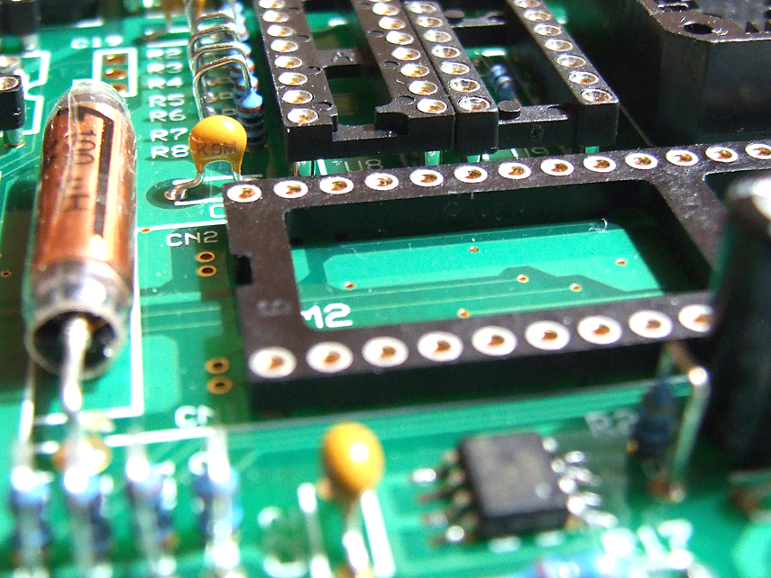 Die so geschaffene Carrierfassung wird für U1 und das WIZnet-Modul verwendet. Beim Einlöten sollte man sehr vorsichtig sein, da es schnell passieren kann, dass man die Buchsen mit Lötzinn zuschmiert: